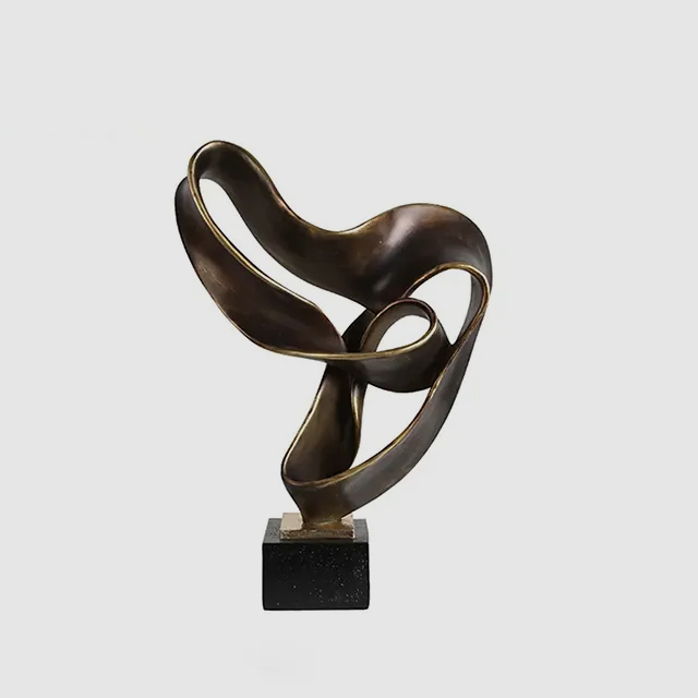 This bronze abstract sculpture is a home decoration work with a modern artistic atmosphere. The overall shape is inspired by flowing ribbons, and uses continuous curves to construct spatial rhythm, showing dynamics and tension in simplicity. The surface of the Abstraction in Sculpture is bronze, and after manual polishing, the edges are slightly radiant with metallic halo, showing a delicate and layered texture. It breaks away from the constraints of concrete forms and closely combines abstract forms with the viewer’s free associations. It is a fusion of modern minimalism and contemporary sculpture aesthetics.