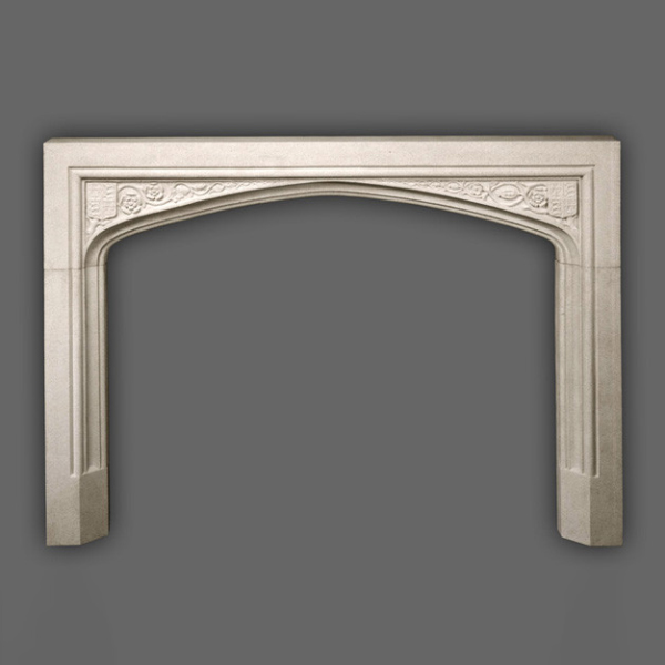 This mantel is carved from marble and is a typical English Tudor style classical mantel. The overall shape is an arched structure, and the top beam is slightly curved inward, which is called the “Gothic Arch”. The Antique Marble Mantle has both the power of medieval architecture and the decorative charm of the early Renaissance. The upper decorative band is delicately carved with vine-wrapped rose patterns and royal coat of arms, showing the symbolic pattern of the British royal nobility. The decorative relief craftsmanship is simple yet exquisite, and the details are elegant and full of historical sense.