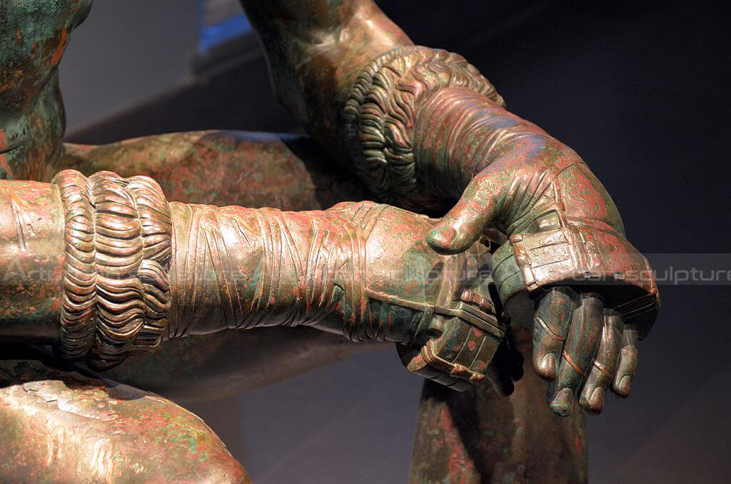This boxer at rest statue is a Hellenistic Greek bronze sculpture depicting a sitting naked boxer still wearing his himantes, a leather handbag The resting boxer is one of the best bronze sculptures that have survived from the ancient world. This work comes from a period of Greek art, in which people are far away from the idealized hero depiction of the body and youth, but instead explore the emotional and psychological themes and greater realism. These features are typical features of Greek art , making it a symbol of Greek style.
