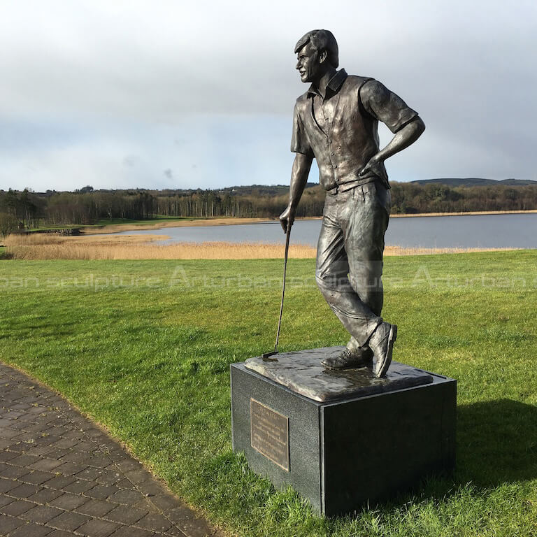 This funny golf statues is very interesting. It is the situation of three frogs with hats and smiling faces playing golf. It looks relaxing. At the foot of a frog was a ball. It raised its club and looked up into the distance. It seemed to be measuring the distance to control the strength. Its posture was very standard. The other frog crossed his legs, put one hand on golf club supporting on the ground, put the other hand in his pocket, and looked at the playing ball frog very leisurely. Behind them is a waiter with a number of 20 written on his chest as his waiter’s number. It carries a golf club bag on its back, a pen and a book in its hand, looks at the distance and records, and is very conscientious.