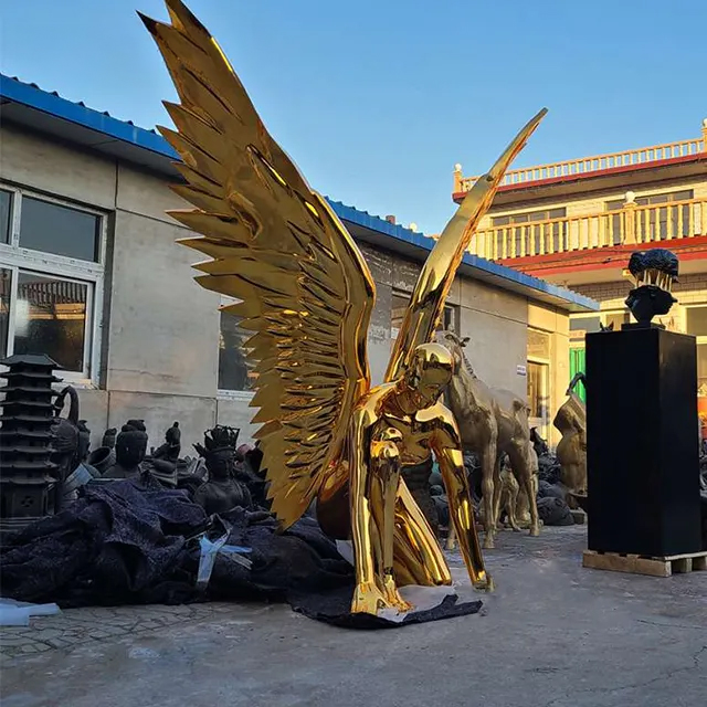This Gothic angel statue, crafted entirely from bronze, embodies a mysterious and solemn artistic aura. Its distinctive form features the angel, draped in a robe and hood, arms folded across his chest, as if guarding a soul or silently praying. The most striking feature of the Gothic Angel Sculpture is the massive wings spread out, embracing from behind, creating a protective and benevolent gesture. The wings are exquisitely detailed, with each feather distinctly layered. The overall form is both gentle and powerful, embodying the religious solemnity and profound inner depth typical of Gothic art.