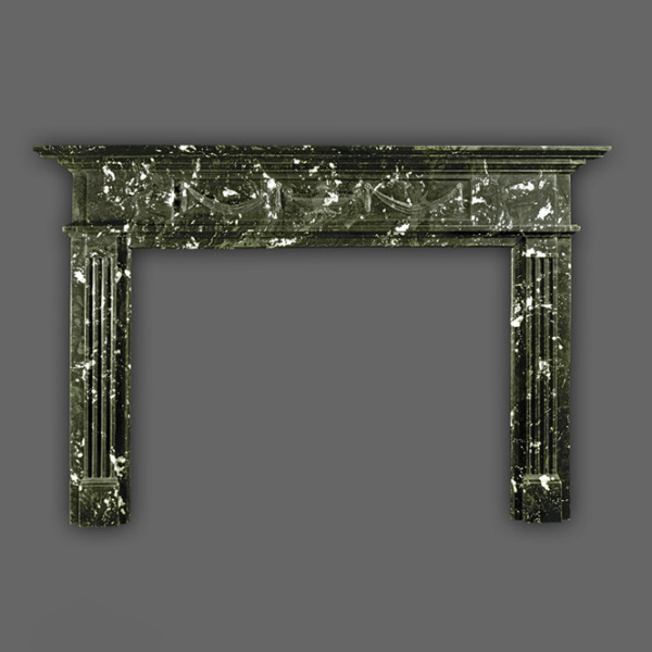 This marble mantel is inspired by the George III period of England around 1800, and incorporates Greek Revival elements, combining classical aesthetics with the beauty of architectural lines. The Green Marble Fireplace Mantel is made of dark green natural marble with natural textures, elegant and calm texture, and extremely aristocratic style.