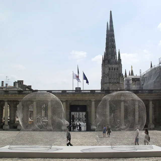 The Head Wire Sculpture is crafted from finely woven stainless steel wire mesh, creating a visual effect of transparency, lightness, and strength. The two faces in the Wire Head Sculpture gaze at each other with serene expressions, as if engaged in a silent spiritual exchange. The transparent wire mesh structure casts soft shadows in the sunlight, blending seamlessly with the surrounding environment, creating a tranquil yet intense spatial tension. Arturban Statue can customize various stainless steel statues. Welcome to contact us for more details.