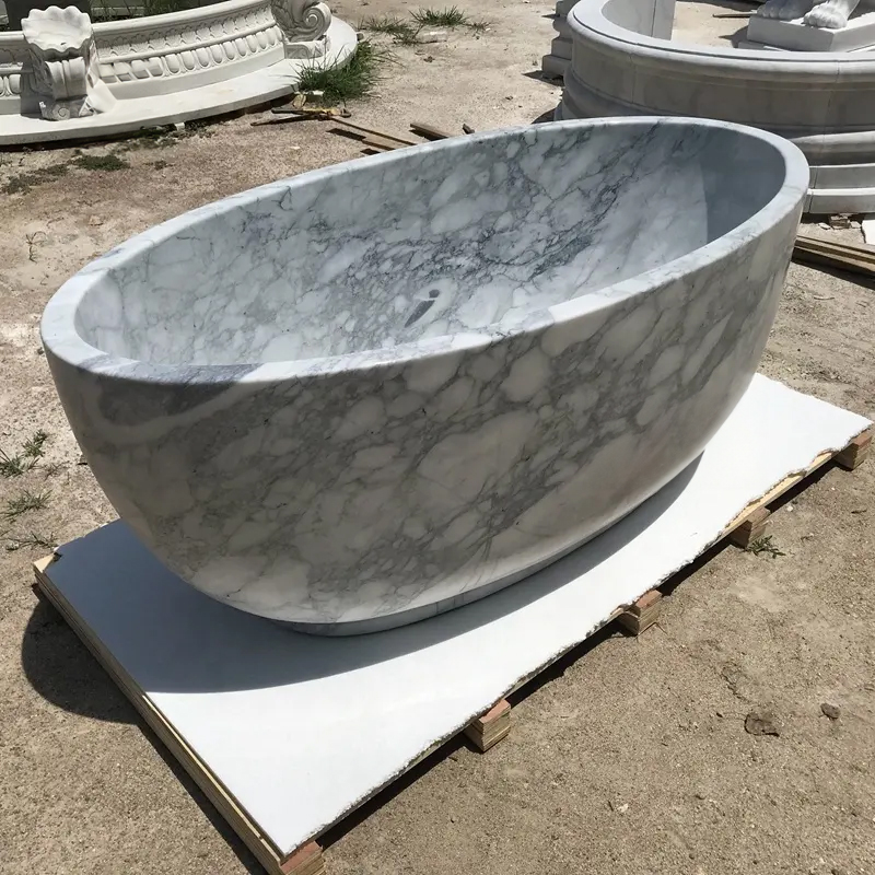 Freestanding Large Oval Bathtub marble installation