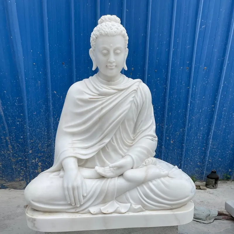 Siddhartha Gautama, the Buddha Shakyamuni, was the founder of Buddhism. Born around 563 BCE in India into a noble family, he witnessed the suffering and impermanence of life in his youth and decided to leave the palace to pursue liberation and enlightenment. After years of asceticism and meditation, he finally attained enlightenment under the Bodhi tree, becoming the “Buddha” (the Awakened One), and began to spread his teachings. This marble Meditating Buddha Statue Outdoor depicts Shakyamuni Buddha in meditation, embodying the core tenets of Buddhism—enlightenment and compassion.
