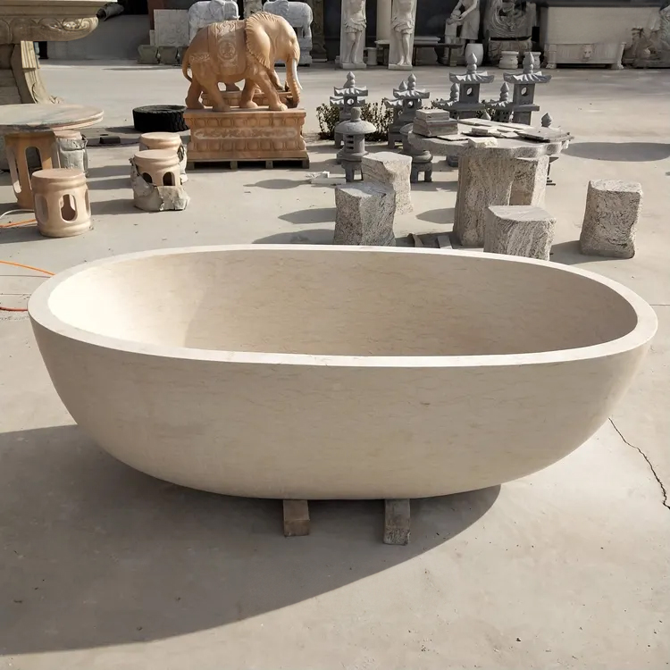 The spacious interior features naturally curved walls that conform to the body’s contours, providing an enveloping soaking experience. The overall design of the Oval Stone Bathtub leans towards a fusion of “stone feel” and “natural feel,” making it suitable for master bathrooms seeking a tranquil atmosphere, vacation homes, or high-end projects emphasizing natural materials. As a stone bathtub that combines functionality and aesthetics, it not only meets daily needs but also adds lasting and enduring visual value to the space. Arturban Sculpture can customize various marble bathtubs. Welcome to contact us for more details.